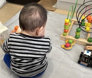 いろいろなおもちゃに興味津々!たくさん手に取り、感触を楽しんでいました♪