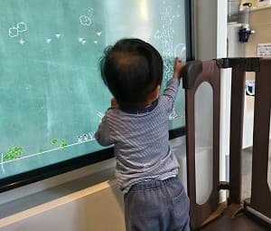 はじめから保育スペース内のおもちゃやモニターに興味津々♡