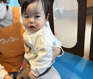 ママから離れ、しばらく不安そうな様子もありましたが、保育スタッフが抱っこをしていると